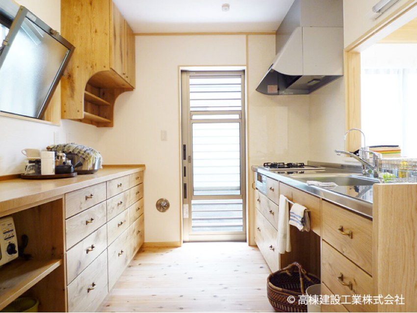 また、近年はお施主様のこだわりが強くなったこともあり、オールステンレスやホーロー素材を利用したキッチン、また家具屋さんや大工さんが無垢材を使っての手づくりキッチンのご要望も増えてきました。
